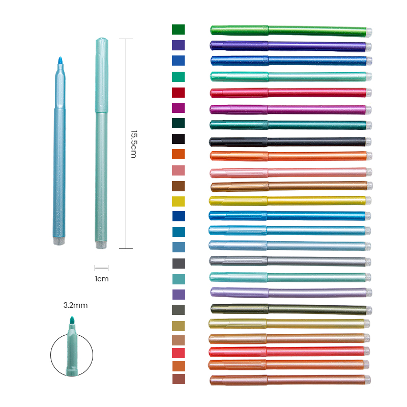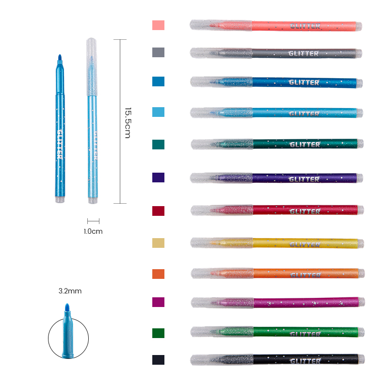 Специально разработанные блестящие чернила текут плавно, обеспечивая равномерное покрытие без комкования. Он быстро сохнет, предотвращая размазывание, что делает его идеальным как для повседневного рисования, так и для профессионального дизайна. В отличие от стандартных маркеров, этот имеет сверкающую отделку, которая оживляет любое произведение искусства.