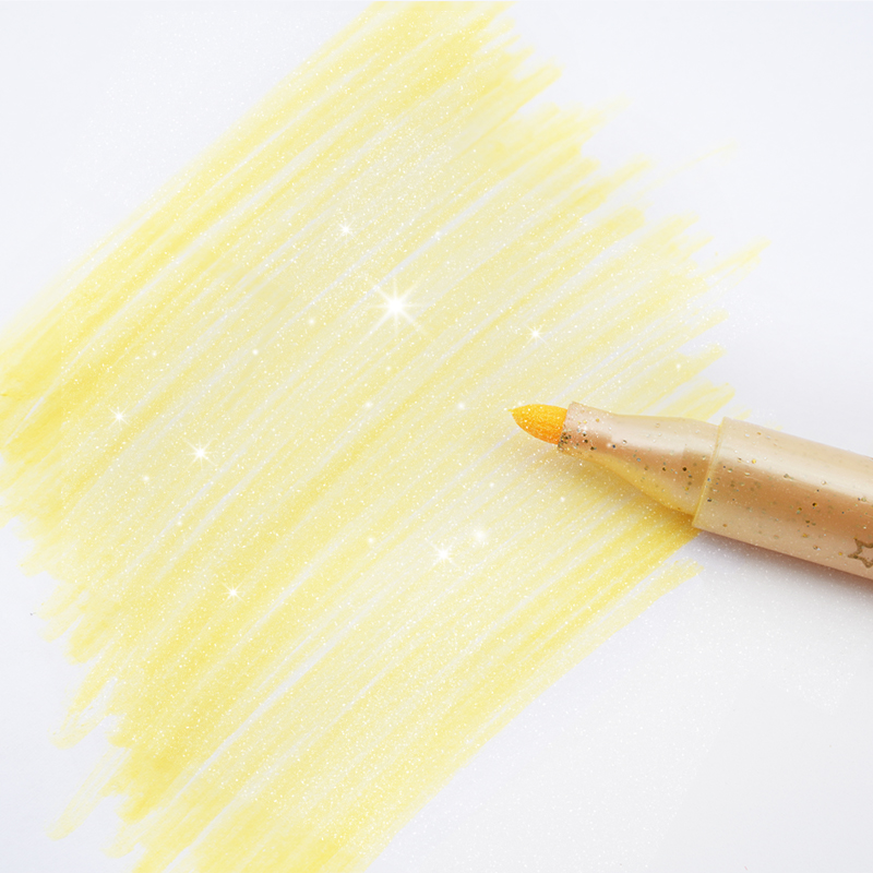 Маркер Gold Glitter Gouache Ink Glitter Color Marker, изготовленный с использованием гуашевых чернил, обеспечивает хорошую непрозрачность и покрытие. Чернила равномерно распределяются как по светлым, так и по темным поверхностям, что делает их идеальными для различных творческих проектов. В отличие от металлических маркеров на водной основе, которые иногда кажутся полупрозрачными, формула гуаши обеспечивает сплошной и яркий золотистый тон при каждом нанесении. Эта функция позволяет полностью выделить детали, добавить акценты или создать полноценные металлические иллюстрации.