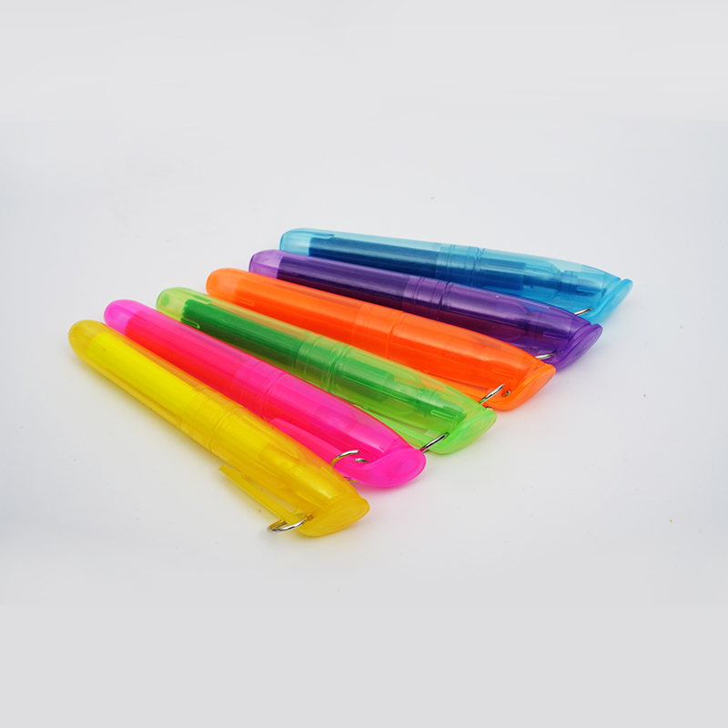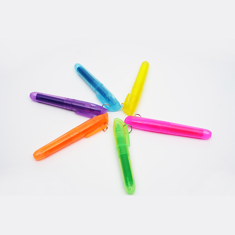 Прозрачная пластиковая ручка-хайлайтер с зажимом для брелока — удобное решение для тех, кто хочет держать необходимые канцелярские принадлежности под рукой. Прозрачный корпус позволяет пользователям быстро контролировать уровень чернил, гарантируя, что ручка всегда готова к использованию. Маркер отличается плавным и равномерным потоком чернил, который четко осветляет текст, не размазывая его, что делает его подходящим для заметок, документов и творческих проектов.